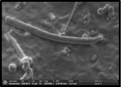 对于塑料或是其他非导电材料来说,使用高电压拍摄往往会导致样品荷电或产生电子束损伤,干扰拍摄,因此低电压分辨率成为拍摄该类材料重要的参考指标。赛默飞超高分辨场发射扫描电镜Apreo 2在1KV下拥有小于1nm的分辨率,兼具高质量成像和多功能分析性能于一体,采用双引擎技术,超低电压下可直接分析不导电样品,尤其适用于PP、PE和PS等高分子塑料类样品,并且无需做喷镀处理,不会对样品造成任何损伤。