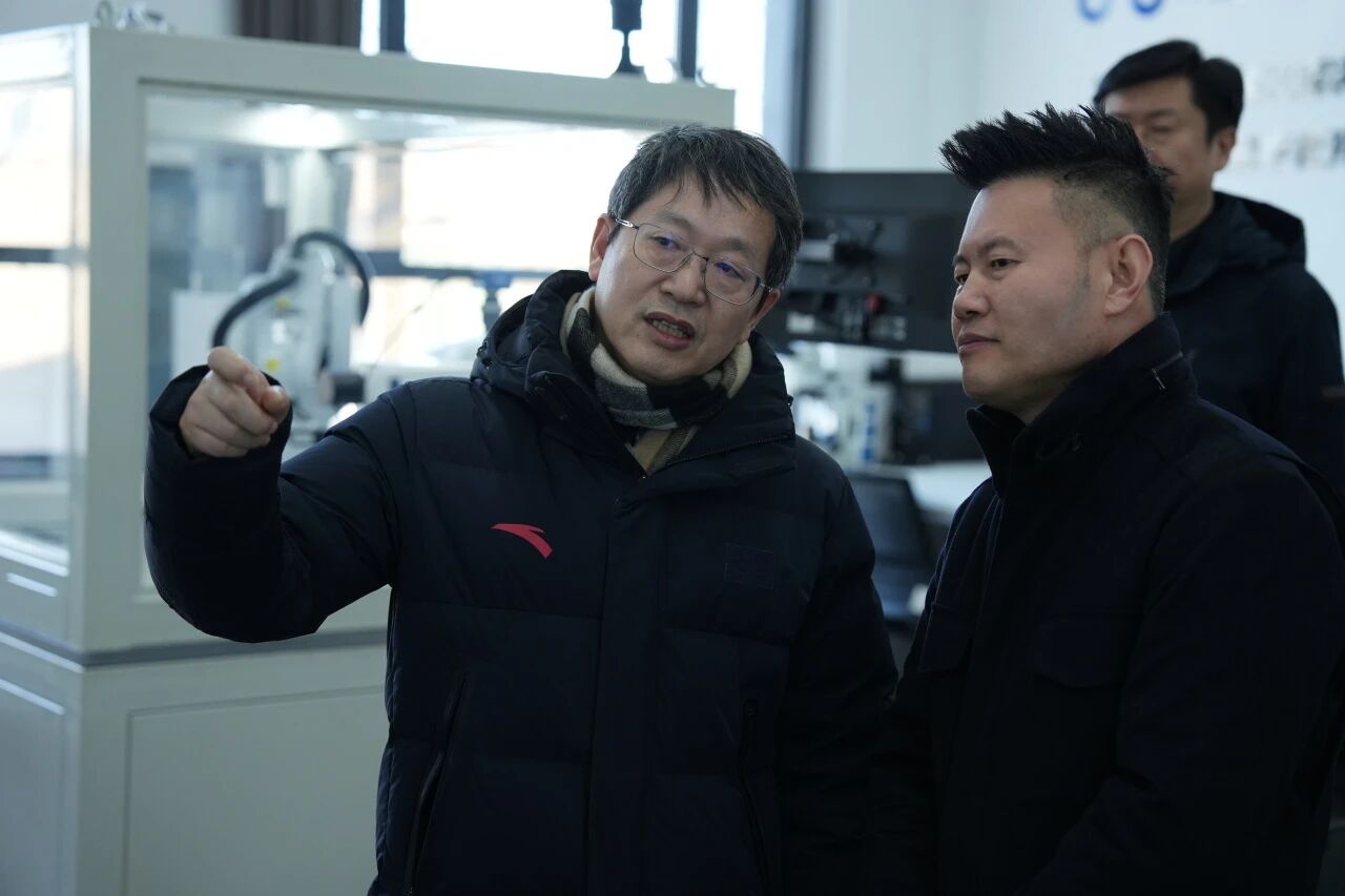 在锂电池材料显微智能分析系统前,调研组认真聆听工程师讲解,了解到该系统可自动捕获锂电池材料中的微米级杂质颗粒,检出率处于行业领先水平,有效助力锂电池行业提升产品安全性与稳定性,为新能源产业高质量发展提供坚实保障。