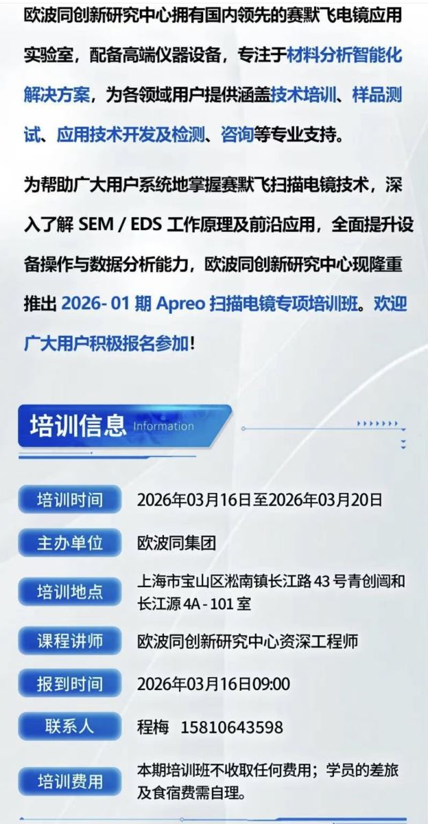 学员招募|赛默飞扫描电镜及能谱应用培训班