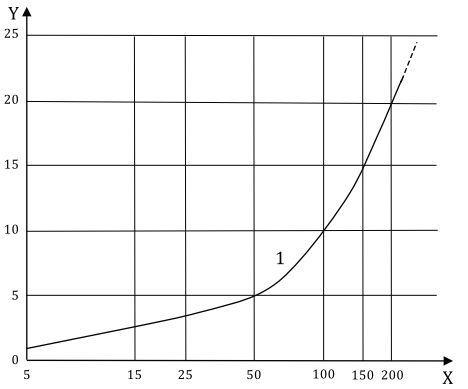 滤膜孔径等于指定的ZUI小粒径的1/10至1/5,对于>50μm的较大颗粒,建议使用1/10。对于<50μm较小颗粒,建议使用1/5。这是因为较小的颗粒通常比较大的颗粒具有更紧密的形状,而较大的颗粒往往具有高度不同的形状范围。 如下图3,X代表需要检测的ZUI小粒径,单位μm;Y代表过滤孔径,单位μm ;1 代表过滤滤膜孔径等于需要检测的ZUI小粒径的1/5到1/10。