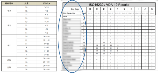 在Aixa-Perception全自动汽车清洁度分析系统中,还提供了诸多可以根据企业内部标准灵活调整的功能。例如微调汽车清洁度分类库、更改CCC代码评级标准、自定义颗粒展示信息和添加化学成分占比统计表等等。