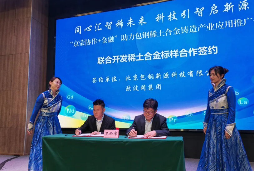2025年4月,在“京蒙协作+金融”助力产业推广大会上,与北京包钢新源正式签署战略合作协议,依托双方核心优势聚焦稀土合金标准样品联合开发与产业化,深化“政产学研金”协同创新,为稀土产业高端化绿色化发展注入强劲动能。