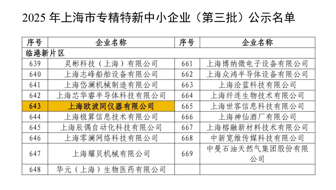 上海欧波同凭借突出的专业化发展水平、精细化管理能力与持续技术创新活力,成功获批2025年度上海市“专精特新”中小企业,是对企业创新实力、发展路径与细分领域核心竞争力的权威背书。